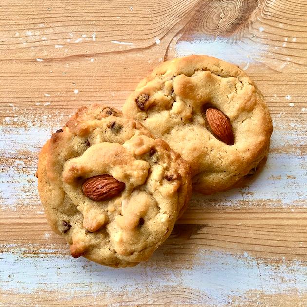 Ingrédients: Farine Moulin de la Ribeyre, beurre AOP, sucre, oeuf frais entier bio Clos Mally, amande, chocolat Cacao Barry, huile, bicarbonate, sel